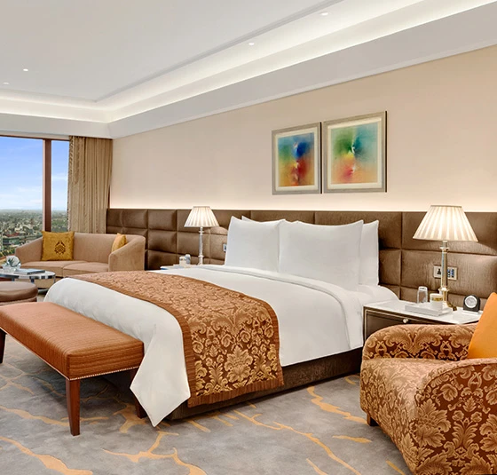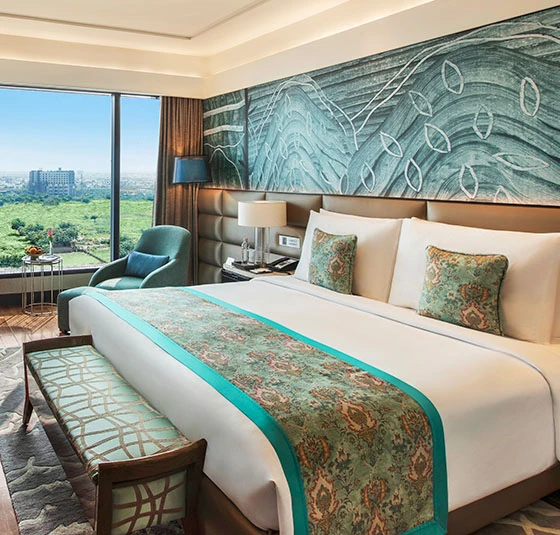 Mute The Leela Ambience Convention Hotel DelhiA city steeped in imperial grandeur, Delhi unveils its rich tapestry through majestic monuments and bustling boulevards. At its very heart, The Leela Ambience Convention Hotel Delhi embodies a sublime fusion of timeless elegance and contemporary sophistication. With 480 exquisitely appointed rooms and suites, two serene outdoor pools, and service that anticipates every desire, it stands as a sanctuary for the discerning modern traveller — a true luxury hotel in Delhi.India’s largest pillarless ballroom, spanning 25,000 sq. ft., sets the stage for extraordinary events at this premier Convention Centre in Delhi. Savour global cuisines, unwind by the pool, and embrace the serene tradition of feeding Koi fish, a symbol of prosperity.Whether for business or leisure, this 5-star hotel in Delhi and renowned Business hotel in Delhi immerses you in the city’s vibrant pulse, from the historic charm of Chandni Chowk to the serene beauty of Lodhi Garden. Stay & Revel Presidential Suite Executive Suite Diplomat Suite with Balcony Deluxe Suite Club Room with Balcony Club Room Premier Room Deluxe Room with Balcony Deluxe Room Curated Offers Festive Getaway Romantic Sojourn Leela DISCOVERY Member Special Stay More Save More Time Travel with The Leela View All Epicurean Delights Dilli 32 Awadhi flavours, frontier spices and local delicacies. A rich celebration of tradition in every bite. Café Knosh From quick bites to a Sunday feast, cravings meet comfort at one of the best 5-star restaurants in Delhi. 32 East An elevated take on South East Asian cuisine — where heritage flavours meet modern finesse. Cherry Bar Dimmed lights, craft cocktails — your perfect evening at the best luxury hotel in Delhi. Club Cuba Vibrant beats. Smouldering cocktails. A dash of Havana’s spirit, right in the heart of Delhi. Celebrations & Conferences CelebrationsIntimate celebrations to grand galas, making every occasion timeless. Enquire Now Factsheet MeetingsAllow us to orchestrate every detail, so your meetings flow effortlessly. Enquire Now Factsheet The Leela Ambience Convention Hotel DelhiHotel CoordinatesHotel Address:1 CBD, Maharaja Surajmal Marg, Near Yamuna Sports Complex, Shahdara, Delhi 11003240 mins from Delhi International Airport | 20 mins from Hindon Airport Telephone: +91 (11) 7172 1234 Hotel Factsheet FAQs Enquire Now You must have JavaScript enabled to use this form. Name phone Phone Email Hotel*The Leela Ambience Convention Hotel Delhi Purpose of EventWeddingsCelebrations Need a stay?YesNo Additional Information I agree to receive updates, offers, via sms, rcs & Whatsapp. Mobile Number Enquire Now You must have JavaScript enabled to use this form. Name Phone Email Hotel*The Leela Ambience Convention Hotel Delhi Additional Information I agree to receive updates, offers, via sms, rcs & Whatsapp. Mobile Number