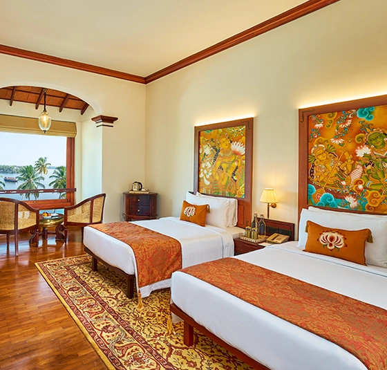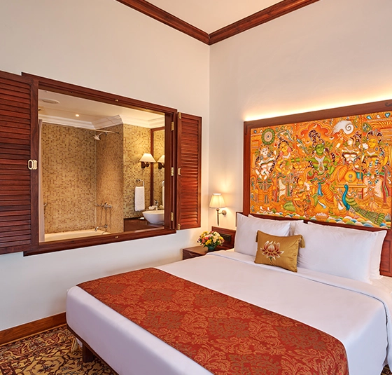 Mute The Leela Ashtamudi, A Raviz HotelPerched on the tranquil banks of Ashtamudi Lake, The Leela Ashtamudi, A Raviz Hotel, is a timeless retreat where Kerala’s soul meets serene luxury. Built in traditional nalukettu style, with whitewashed walls, red-tiled roofs, and breezy verandahs shaded by swaying coconut palms, this heritage resort is among the finest luxury resorts in Ashtamudi, offering an immersive escape into nature and culture.Drift through lush mangroves by boat, dine at a floating restaurant under the stars, and witness oil lamps flicker at sunset as classical music and dance bring Kerala’s spirit to life. Recognised as one of the best luxury family resorts in Kerala, this is more than a stay — it’s an experiential journey into the heart of the backwaters. Stay & Revel The Raviz Palace Mahayana Houseboat Anchal Cottage Erattupetta Cottage Royal Suite with Panoramic View Heritage Suite Royal Villa with Plunge Pool Royal Premier Lake View Royal Premier Grand Heritage Lake View Grand Heritage Room Curated Offers Festive Getaway Mana Shanti The Leela Palace Trail Time Travel with The Leela Lake and Beach Ecstasy View All Epicurean Delights Raanthal A floating seafood restaurant in Kollam, aglow with lamps, serving the freshest grilled catch of the day. Keraleeyam Savour the soul of Kerala with dishes like Raviz Fish Nirvana at one of the best restaurants in Kollam. Portico Sip freshly brewed coffee and savour moments of quiet or camaraderie. Zirkon Aqua-Themed Sports Bar Celebrations & Conferences CelebrationsIntimate celebrations to grand galas, making every occasion timeless. Enquire Now Factsheet MeetingsAllow us to orchestrate every detail, so your meetings flow effortlessly. Enquire Now Factsheet The Leela Ashtamudi, A Raviz HotelHotel CoordinatesHotel Address:Thevally Bridge, Kollam - Elamballoor Road, Palace Nagar, Thevally, Mathilil, Kerala - 69160190 mins from Trivandrum (Thiruvananthapuram) Airport Telephone: +91 (474) 275 1111 Hotel Factsheet FAQs Enquire Now You must have JavaScript enabled to use this form. Name phone Phone Email Hotel*The Leela Ashtamudi, A Raviz Hotel Purpose of EventWeddingsCelebrations Need a stay?YesNo Additional Information I agree to receive updates, offers, via sms, rcs & Whatsapp. Mobile Number Enquire Now You must have JavaScript enabled to use this form. Name Phone Email Hotel*The Leela Ashtamudi, A Raviz Hotel Additional Information I agree to receive updates, offers, via sms, rcs & Whatsapp. Mobile Number