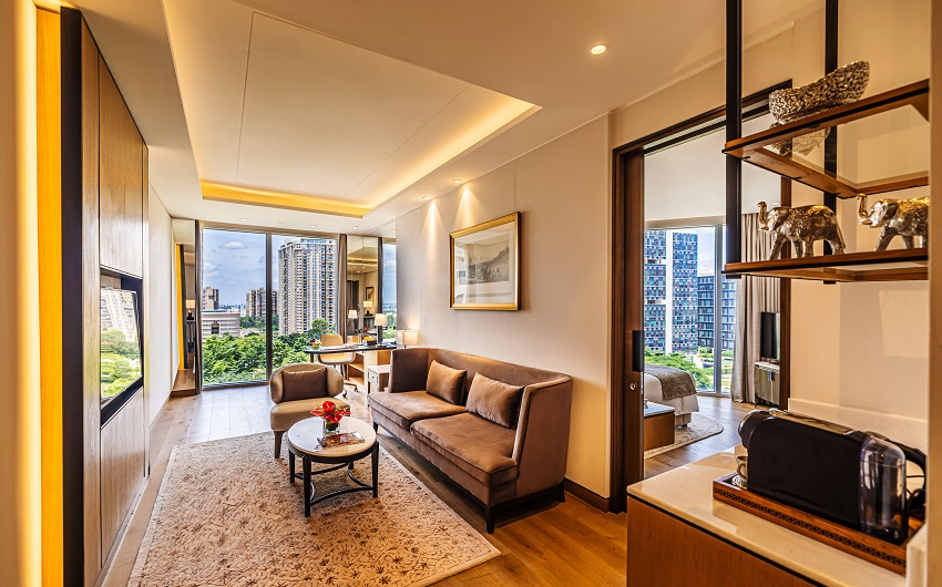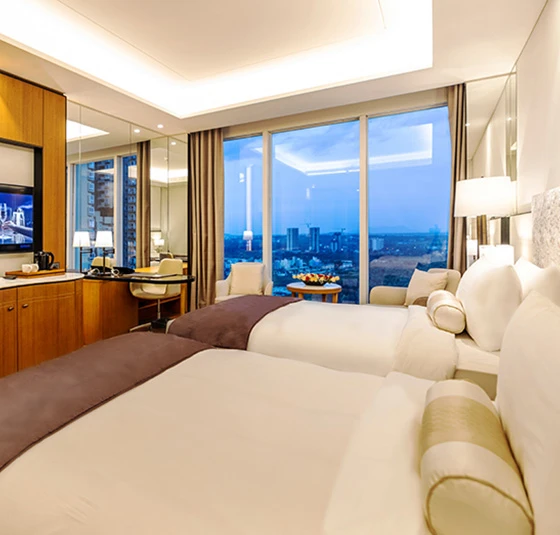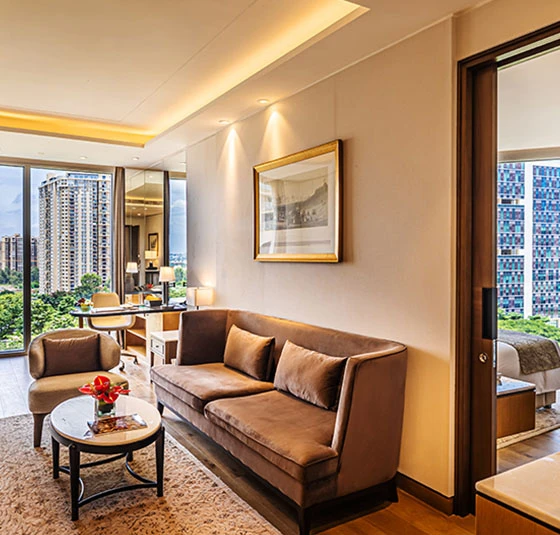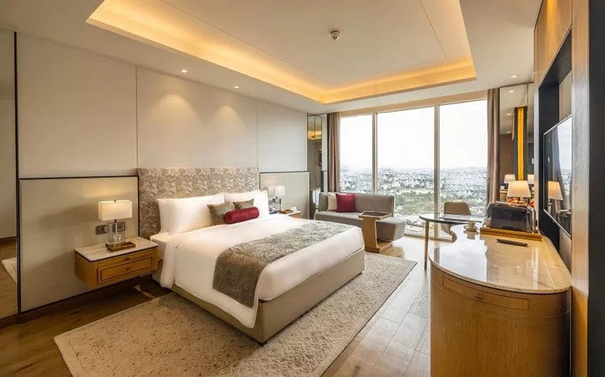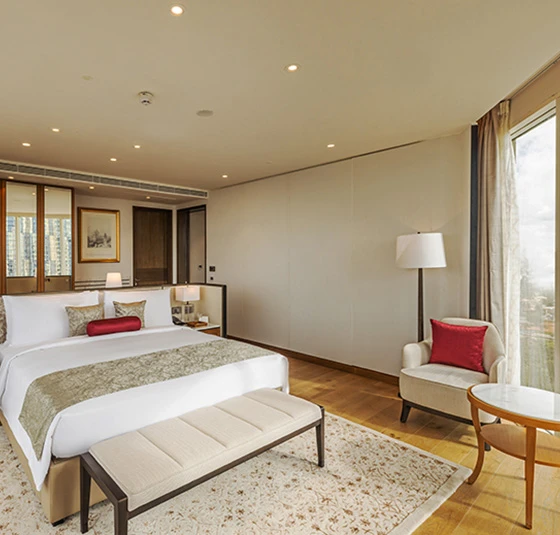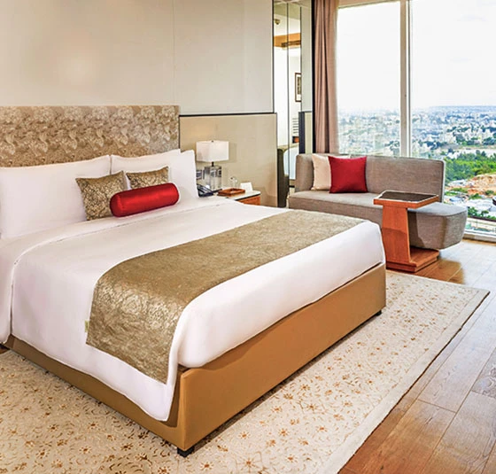Mute The Leela Bhartiya City BengaluruNestled in an upscale ‘city within a city’ in Bengaluru’s Special Economic Zone, The Leela Bhartiya City Bengaluru stands as a beacon of refined elegance and 5-star grandeur. Strategically located near the Kempegowda International Airport, offering seamless access to the city’s vibrant IT corridor and Financial District, this luxury hotel near Bangalore Airport brings together sophistication and comfort. a distinguished 5-star hotel near KempeGowda International Airport Bangalore, it also stands among the most preferred 5-star hotels near Bangalore Airport for both business and leisure travellers.Whether for corporate meetings or milestone celebrations, The Leela Bhartiya City Bengaluru is designed to host it all — with its luxuriously appointed spacious rooms, celebrated restaurants, versatile venues including a premier Convention Centre Bangalore, and thoughtful rituals.We invite you to immerse yourself in the pulsating heart of India’s global innovation capital — right here, at The Leela Bhartiya City Bengaluru. Stay & Revel Presidential Suite Luxury Suite Executive Suite Royal Club Room Premier Room Deluxe Room Curated Offers Festive Getaway Romantic Sojourn Leela DISCOVERY Member Special Stay Your Way Suite Indulgence View All Epicurean Delights The Lotus Oriental Sushi, dim sum, and more by the infinity pool-Bangalore’s go-to for Japanese cuisine. Falak Awadh and Frontier cuisine like never before, with opulent city views that captivate the senses. Quattro Interactive dining with boulevard views, featuring unique dishes and indulgent Sunday brunches. The Library Bar Indo-Victorian charm with award-winning wines, single malts, and artisanal cocktails. The Lobby Lounge Where coffee turns into conversation and tea comes with a side of nostalgia. Relax. Unwind. Celebrations & Conferences CelebrationsIntimate celebrations to grand galas, making every occasion timeless. Enquire Now Factsheet MeetingsAllow us to orchestrate every detail, so your meetings flow effortlessly. Enquire Now Factsheet The Leela Bhartiya City BengaluruHotel CoordinatesHotel Address:6/2, Thanisandra Main Road, Tirumanahalli, Bengaluru 56006428 mins from Bengaluru International Airport Telephone: +91 (80) 4545 1234 Hotel Factsheet FAQs Enquire Now You must have JavaScript enabled to use this form. Name phone Phone Email Hotel*The Leela Bhartiya City Bengaluru Purpose of EventWeddingsCelebrations Need a stay?YesNo Additional Information I agree to receive updates, offers, via sms, rcs & Whatsapp. Mobile Number Enquire Now You must have JavaScript enabled to use this form. Name Phone Email Hotel*The Leela Bhartiya City Bengaluru Additional Information I agree to receive updates, offers, via sms, rcs & Whatsapp. Mobile Number