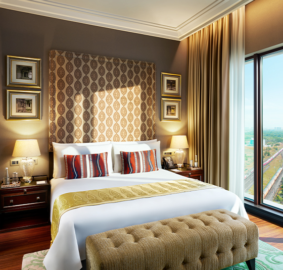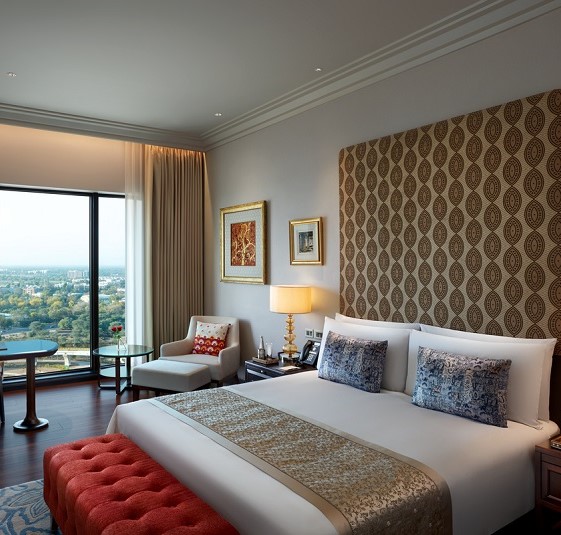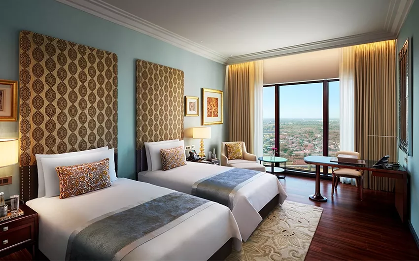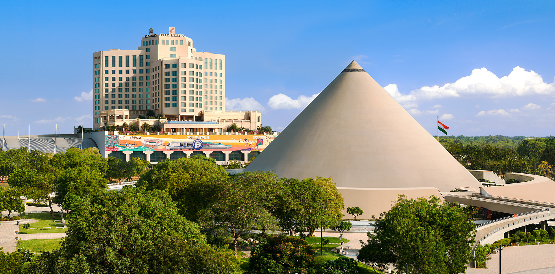 Mute The Leela GandhinagarPerched atop the Gandhinagar railway station, The Leela Gandhinagar is an architectural marvel where timeless heritage meets modern elegance. Recognised as a premier 5-star hotel in Gandhinagar, it stands as a testament to refined craftsmanship and gracious hospitality.Discover spaces adorned with thikri mirror art, intricate regional textiles and echoes of India’s rail history, while the city’s tallest address offers breathtaking views of the Sabarmati and its verdant surroundings. Unwind in the infinity pool with the skyline as your backdrop and indulge in the comfort and sophistication that define this exceptional 5-star hotel in Gandhinagar.Savour regional delicacies and global flavours at our gourmet restaurants. Explore the intricate Adalaj stepwells, the grandeur of Akshardham Temple, and the cultural tapestry of Ahmedabad, a UNESCO World Heritage City, just next door.The Leela Gandhinagar, a distinguished 5-star hotel in Gujarat, invites you to experience Gujarat’s vibrant spirit like never before.Notice: Our swimming pool will be temporarily closed from 6th October to 5th March 2026. We apologize for any inconvenience caused. Stay & Revel Presidential Suite Royal Suite Premier Club Central Vista View Room Luxury Garden View Room Deluxe Horizon View Room Curated Offers Festive Getaway Stay More Save More Leela DISCOVERY Member Special Time Travel with The Leela The Leela Mobile Privilege View All Epicurean Delights Diya For a candlelight dinner in Gandhinagar that feels like a journey through India’s culinary heart. Citrus Junction Savour Gujarati staples and global favourites at this all-day dining top restaurant in Gandhinagar. Moksha Lounge A breezy escape that makes this café in Gandhinagar perfect for a laid-back hangout. The Royal Club Lounge Overlooking Central Vista, this rooftop café in Gandhinagar offers luxury and relaxation. Celebrations & Conferences CelebrationsIntimate celebrations to grand galas, making every occasion timeless. Enquire Now Factsheet MeetingsAllow us to orchestrate every detail, so your meetings flow effortlessly. Enquire Now Factsheet The Leela GandhinagarHotel CoordinatesHotel Address:(Unit of Gandhinagar Railway and Urban Development Corporation Ltd.) Sector-14 Airspace, Above Railway Station, Off Ahmedabad State Highway, Gandhinagar, Gujarat 38201430 mins from Ahmedabad International Airport Telephone: +91 (79) 690 21234 Hotel Factsheet FAQs Enquire Now You must have JavaScript enabled to use this form. Name phone Phone Email Hotel*The Leela Gandhinagar Purpose of EventWeddingsCelebrations Need a stay?YesNo Additional Information I agree to receive updates, offers, via sms, rcs & Whatsapp. Mobile Number Enquire Now You must have JavaScript enabled to use this form. Name Phone Email Hotel*The Leela Gandhinagar Additional Information I agree to receive updates, offers, via sms, rcs & Whatsapp. Mobile Number