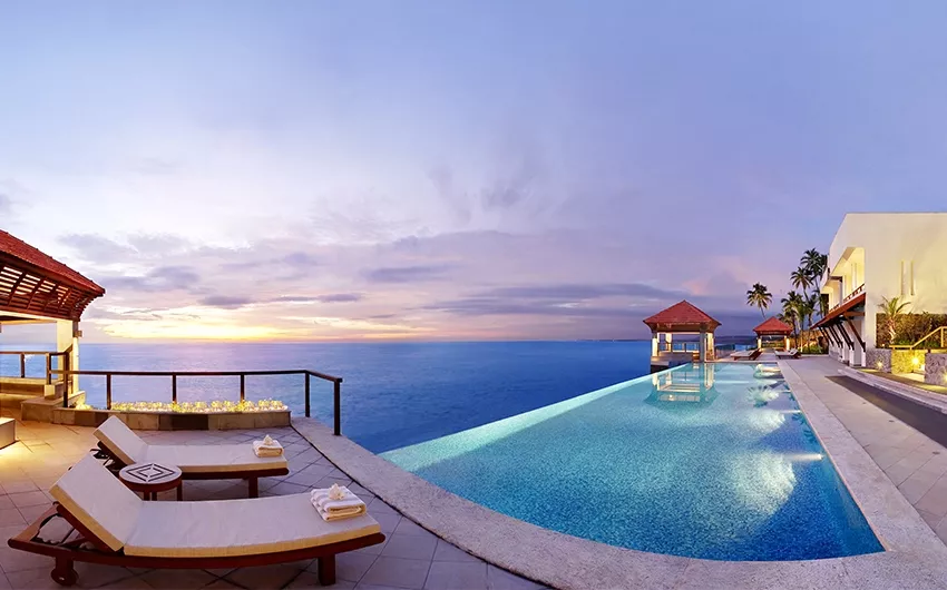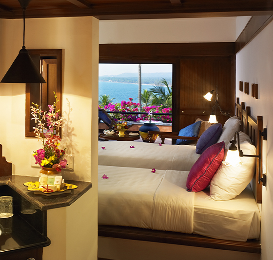 Mute The Leela Kovalam, A Raviz HotelPerched majestically on a cliffside overlooking the Arabian Sea, The Leela Kovalam, A Raviz Hotel, is India’s only clifftop 5-star resort in Kovalam — a timeless retreat designed by Charles Correa. Spread across 67 acres, it includes the historic Halcyon Castle, once the royal summer residence of Travancore’s kings, making it a landmark luxury resort in Kovalam, Kerala.Whitewashed walls, red-tiled roofs, and panoramic sundecks frame sweeping ocean vistas, while the sea breeze and rhythmic waves create a symphony of serenity. Explore local markets, dive into coastal adventures, and dine on the freshest seafood, straight from the day’s catch, at the best resort in Kovalam, Kerala.Wander through Aaramam, our sprawling 5-acre organic vegetable garden, or unwind with Ayurvedic rituals at the spa — the essence of a 5-star beach resort in Kovalam, Kerala. More than a stay, this is a royal embrace of Kerala’s coastal soul. Stay & Revel Palace Suite - Sri Parvathy Palace Suite - Sri Lakshmi Palace Suite - Sri Sharada Palace Suite - Sri Swathi Presidential Suite Ocean View Suite Royal Club Duplex Suite Royal Club Suite Royal Club Room Premier Sea View Room Sea View Villa Garden View Villa Curated Offers Festive Getaway Manashanti Leela DISCOVERY Member Special Romance at The Club The Leela Palace Trail View All Epicurean Delights The Tides Fresh seafood, a thatched roof and an open beach. Arguably Kovalam’s best beachfront restaurant. The Terrace Indulge in local and global flavours by the infinity pool at this luxury hotel in Kovalam. The Café A private, laid-back spot for Royal Club guests at this café in Kovalam. Jazz & Blues Sea views, cocktails and the rhythm of jazz. More than a bar, an experience. The Sky Bar Delight in candlelight, ocean breeze and signature drinks at Kovalam’s finest rooftop spot. The Bistro The ideal restaurant in Kovalam Beach for croissants, muffins and coffee by the pool. Celebrations & Conferences CelebrationsIntimate celebrations to grand galas, making every occasion timeless. Enquire Now Factsheet MeetingsAllow us to orchestrate every detail, so your meetings flow effortlessly. Enquire Now Factsheet The Leela Kovalam, A Raviz HotelHotel CoordinatesHotel Address:Kovalam Thiruvananthapuram, Kerala - 69552725 mins from Thiruvananthapuram International Airport Telephone: +91 (471) 6691111 Hotel Factsheet FAQs Enquire Now You must have JavaScript enabled to use this form. Name phone Phone Email Hotel*The Leela Kovalam, A Raviz Hotel Purpose of EventWeddingsCelebrations Need a stay?YesNo Additional Information I agree to receive updates, offers, via sms, rcs & Whatsapp. Mobile Number Enquire Now You must have JavaScript enabled to use this form. Name Phone Email Hotel*The Leela Kovalam, A Raviz Hotel Additional Information I agree to receive updates, offers, via sms, rcs & Whatsapp. Mobile Number