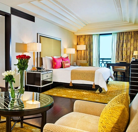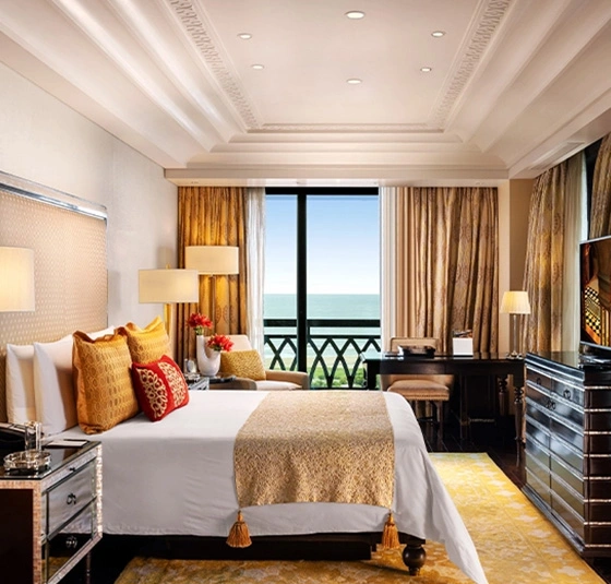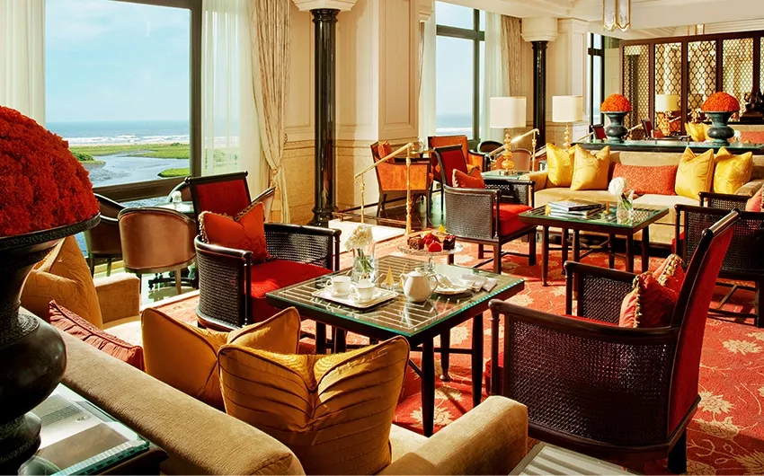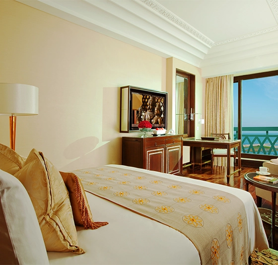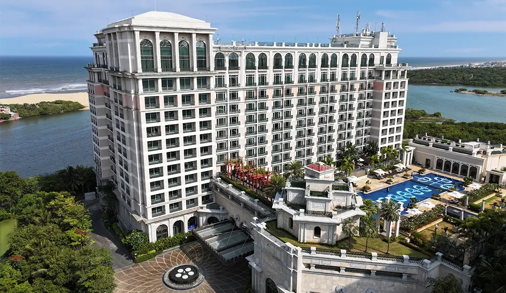 Mute The Leela Palace ChennaiInspired by the grandeur of Chettinad palaces, The Leela Palace Chennai is a majestic seafront sanctuary where timeless elegance meets modern indulgence. Set on 4.8 acres overlooking the Bay of Bengal, this 5-star hotel in Chennai blends classical architecture with contemporary luxury, embodying the city’s rich heritage and cosmopolitan charm.As a distinguished luxury hotel in Chennai, it offers marble-lined corridors, chandelier-lit ceilings, curated art, and lush gardens that create a setting of regal serenity. Savour global cuisine at our acclaimed restaurants, witness the soul-stirring theepantham lamp ritual at dusk, and be swept away by live Carnatic melodies.In your opulent suite at this renowned 5-star hotel in Chennai, discover not just comfort — but a profound connection to the cultural soul of the city.Scan here to view our valid FSSAI License for food safety compliance.Note: The Leela Palace Chennai is a 100% non-smoking hotel, with a designated smoking area available for guests’ convenience. Stay & Revel Presidential Suite Chairman Suite Royal Suite – 2 Bedrooms Royal Suite – 1 Bedroom Premier Suite Executive Suite Premier Club Room Royal Club Sea View Room Royal Club Room Grand Palace Sea View Room Grand Palace Pool View Room Grand Palace Room Curated Offers Festive Getaway Romantic Sojourn Staycation Leela DISCOVERY Member Special The Leela Palace Trail View All Epicurean Delights China XO From Cantonese classics to Peking Duck, discover why this is one of the best Chinese restaurants in Chennai. Jamavar Raan-e-Jamavar and Dal Jamavar. Regal flavours at one of the finest 5-star restaurants in Chennai. Spectra Global plates with a view. A favourite for multicuisine restaurants in Chennai. Library Blu Craft cocktails, tapas and a sea of blue. A go-to for the best bars in Chennai. The Lobby Lounge An elegant escape where high tea is paired with delicate scones and quiet conversations. The Cake Shop Artisanal chocolates, pastries and freshly baked breads to tempt every craving. Celebrations & Conferences CelebrationsIntimate celebrations to grand galas, making every occasion timeless. Enquire Now Factsheet MeetingsAllow us to orchestrate every detail, so your meetings flow effortlessly. Enquire Now Factsheet The Leela Palace ChennaiHotel CoordinatesHotel Address:Adyar Seaface, 175 Sathya Dev Avenue Ext, MRC Nagar, Chennai 600 02835 mins from Chennai International Airport Telephone: +91 (44) 6665 1234 Hotel Factsheet FAQs Enquire Now You must have JavaScript enabled to use this form. Name phone Phone Email Hotel*The Leela Palace Chennai Purpose of EventWeddingsCelebrations Need a stay?YesNo Additional Information I agree to receive updates, offers, via sms, rcs & Whatsapp. Mobile Number Enquire Now You must have JavaScript enabled to use this form. Name Phone Email Hotel*The Leela Palace Chennai Additional Information I agree to receive updates, offers, via sms, rcs & Whatsapp. Mobile Number